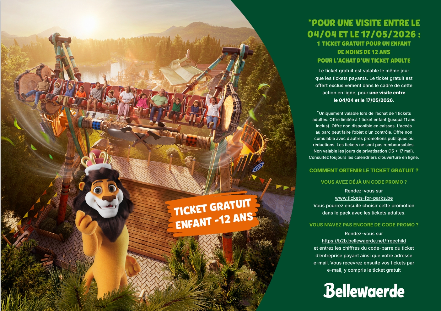 Que ce soit pour une journée riche en sensations fortes à Walibi ou pour une sortie en famille entre parc animalier et attractions à Bellewaerde, cette offre vous permet de profiter d’une réduction exclusive réservée à notre communauté.
